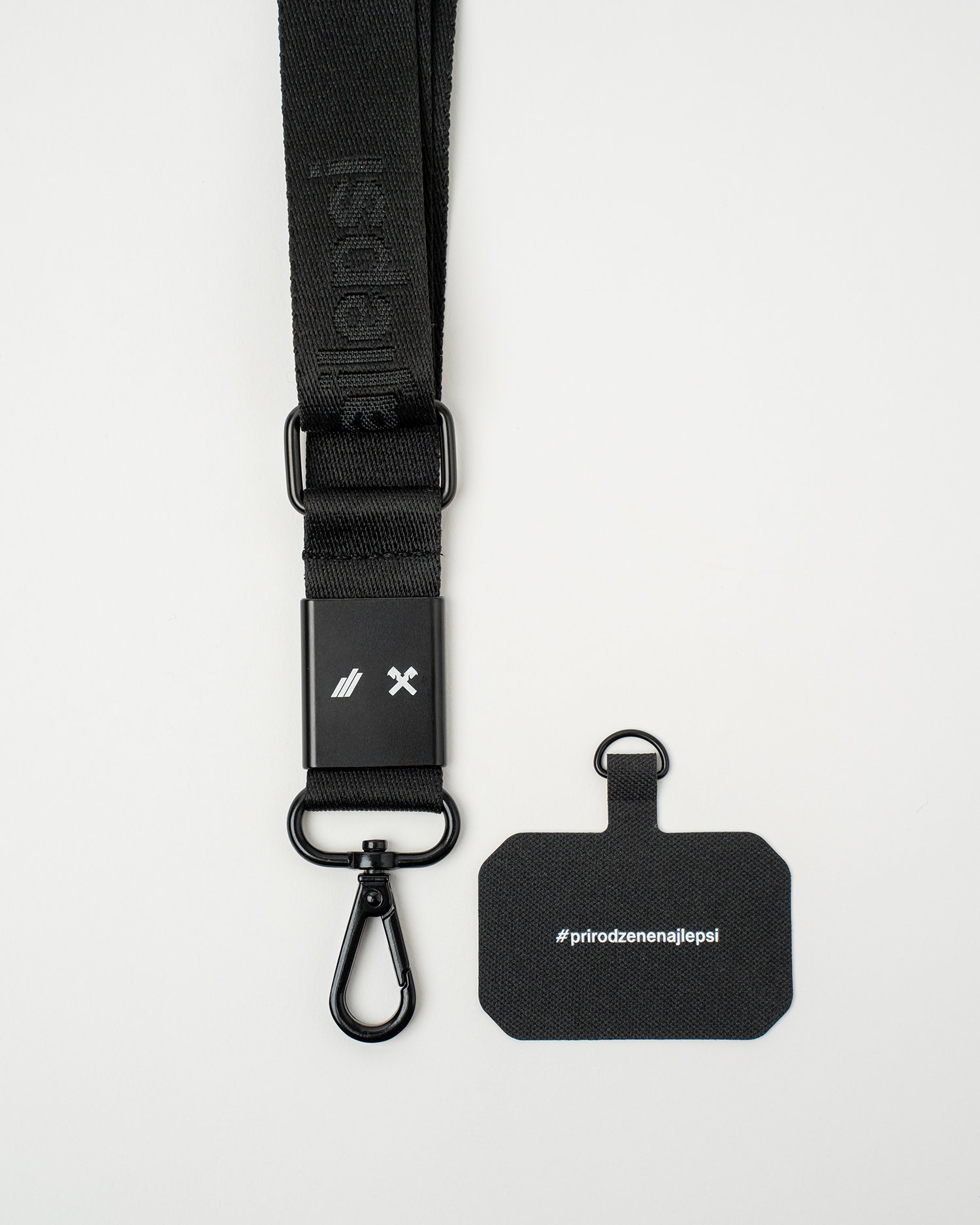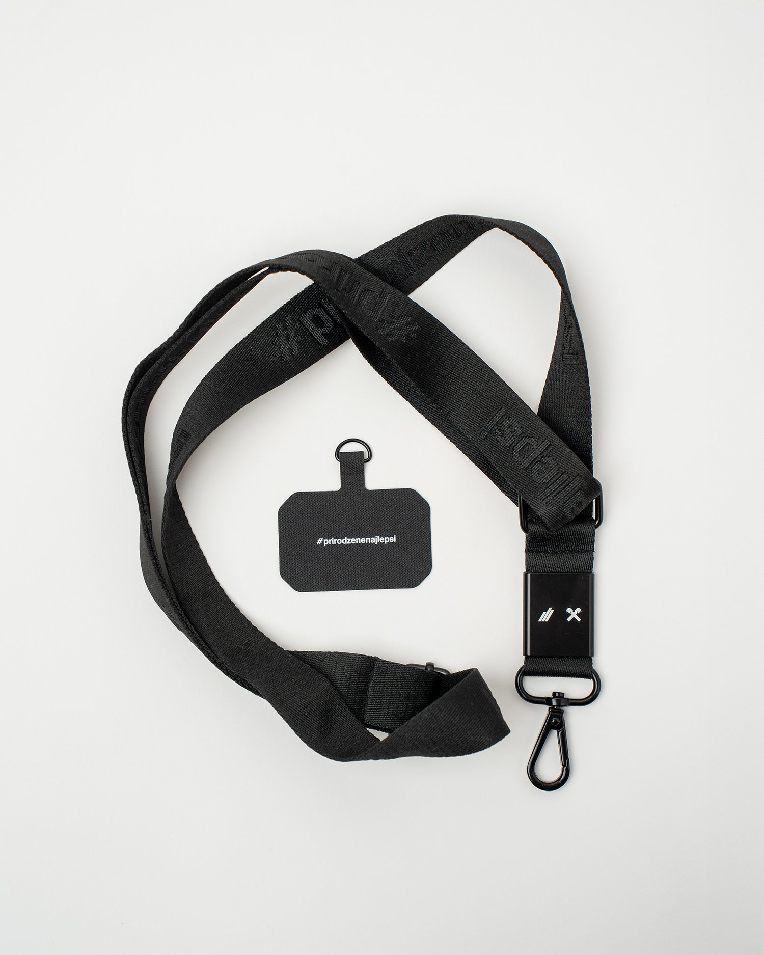 Kvalitná čierna kľúčenka s jemným tkaným brandingom #prirodzenenajlepsi po celej dĺžke. Má kovovú pracku s vygravírovaným multibrandom, odolnú karabínu a nastaviteľnú dĺžku pre maximálne pohodlie. Vďaka univerzálnemu úchytu sa na ňu dá pohodlne prichytiť aj mobilný telefón.