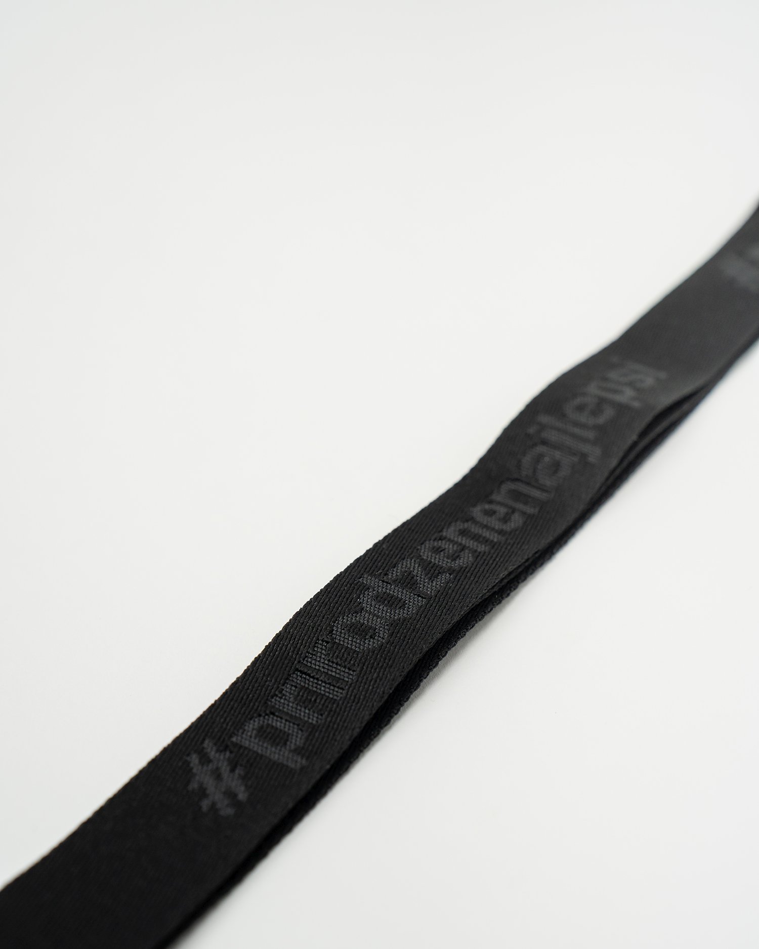 Kvalitná čierna kľúčenka s jemným tkaným brandingom #prirodzenenajlepsi po celej dĺžke.